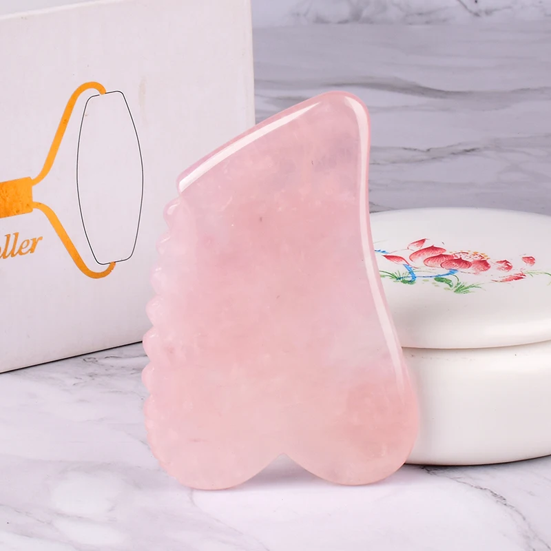 Original Rose Quartz Comb Sawtooth Gua Sha Tool Massage Head Health Care Body Face Natural Stone Crystal Scraping Board Massager