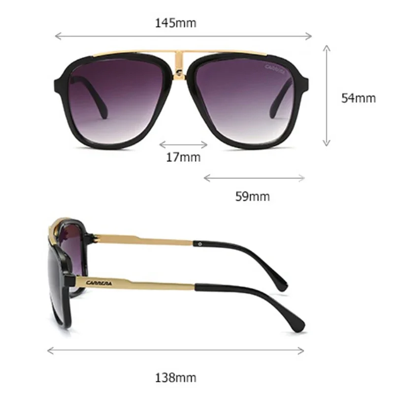 These enveloping sunglasses combine the sporting spirit and vintage charm with an urban look, making them ideal for men who wish to stand out. The extra-large rectangular frame has a scanned face and plastic branches and is supplemented by anti-UV polycarbonate glasses to protect your eyes from the harmful rays of the sun. We find the logo engraved on each branch and in the center as well as the famous C discreetly inserted in the left sleeve, as a signature.